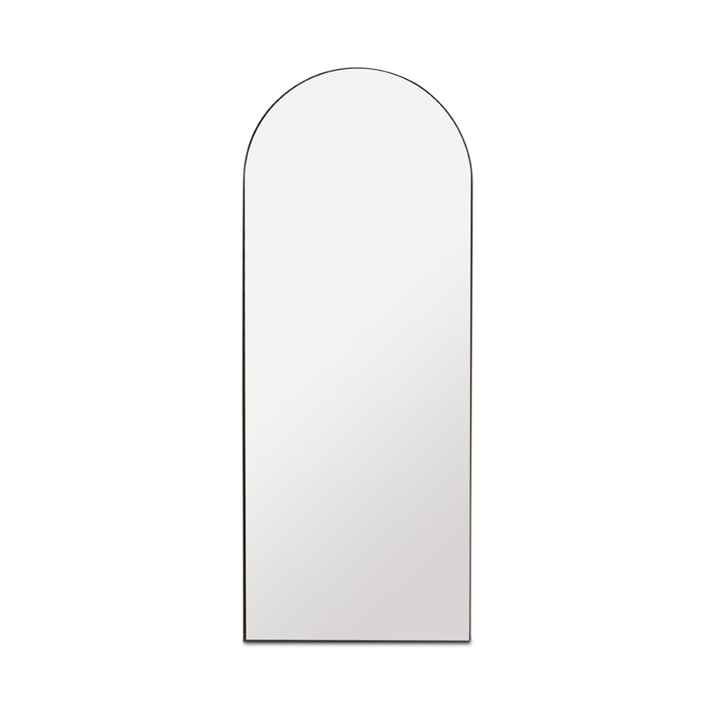 The Philip Floor Mirror in black aluminium alloy offers a refined, modern silhouette with a striking architectural presence. Its arched top introduces a subtle softness to the bold, clean lines of the matte black frame. Sleek and versatile, this full-length mirror anchors any space with depth and balance - perfect for interiors that favor a minimalist, industrial, or monochrome design aesthetic.