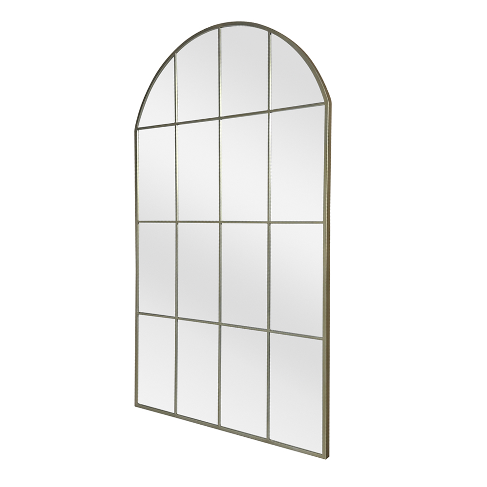 The Irene Floor Mirror combines architectural elegance with modern sophistication. Its brushed gold metal frame exudes a soft yet refined luxury, while the window-like muntins add a distinct geometric element, creating a sense of depth and dimension. The arched top enhances its graceful silhouette, making it a striking focal point in any room. Perfect for spaces that blend modern style with a hint of classical charm, Irene serves as both a functional mirror and a statement piece.