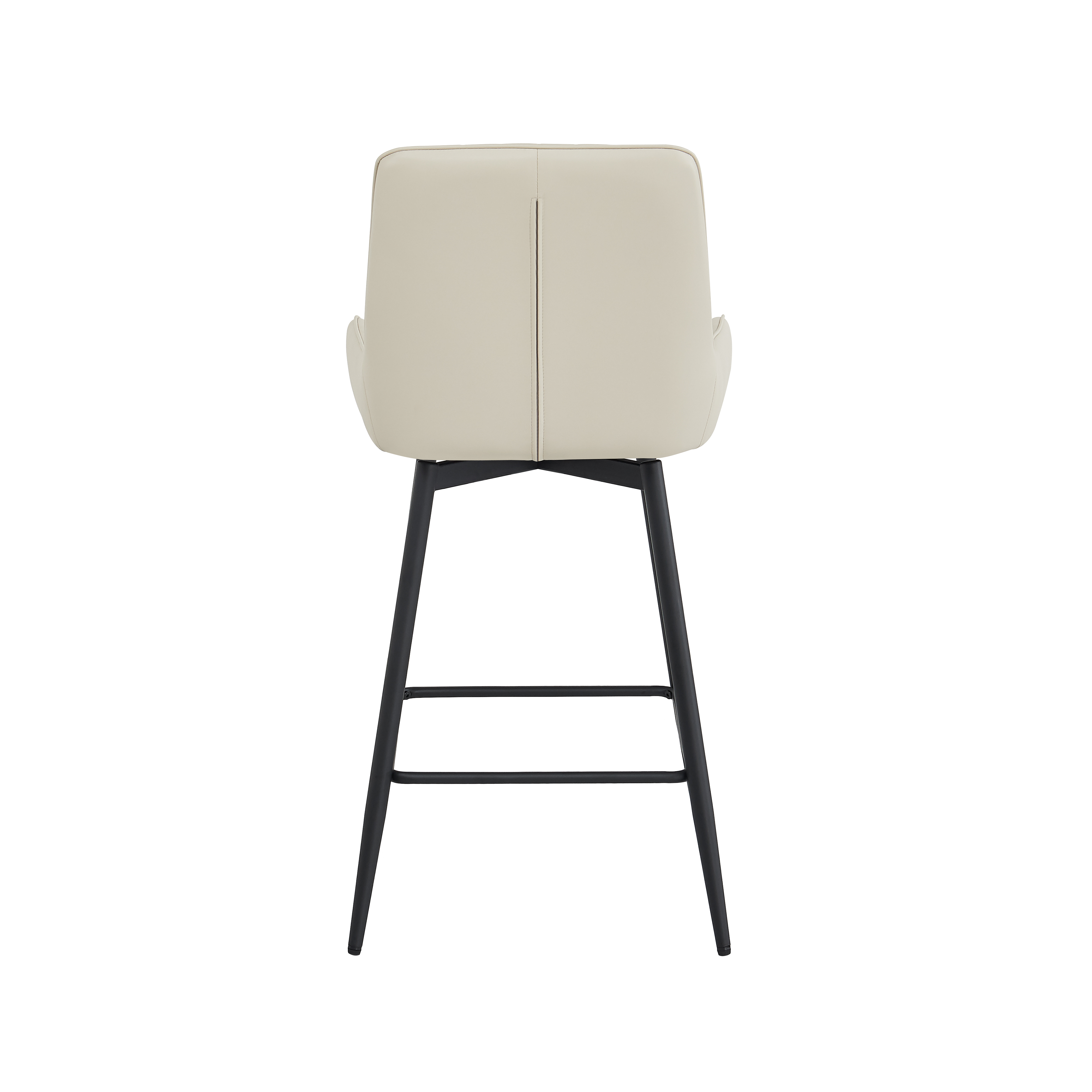 The Emma Swivel Counter Chair in light taupe faux leather embodies understated elegance with a contemporary edge. Its smooth, supple upholstery lends a soft, neutral tone that brightens dining or bar spaces, effortlessly complementing both modern and transitional interiors. Designed for comfort and practicality, the gently curved seat and backrest cradle the body with supportive foam cushioning, while subtle vertical stitching adds refined detail. The 360° swivel function offers freedom of movement, perfect for lively gatherings or everyday meals. Sturdy black metal legs with a convenient footrest complete the look, providing a balanced mix of durability and style.